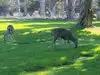 On the golf course, a deer ran across the lawn, completely lost in thought, and was not at all impressed, and a young deer, still with white spots on its fur, stood by the side of the road and looked at us completely indifferently. If you had stuck your hand out of the car window, you could probably have petted it.
