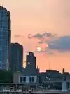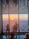 Arrived before sunset. Stayed after sunset. Viewed city, shore, pier, and lake before and after. Viewed sunset (sunset that night was NOT spectacular). Enjoyed drinks and nice seating. Reasonable seats for sunset. Don't buy THEIR photo. Take your own. We chose 360 Chicago over Sears/Willis Tower because seating at 360 facilitated a longer, more comfortable stay.