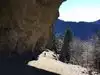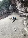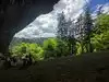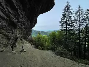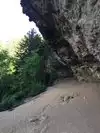 The trail runs along a beautiful creek. The heavy rain before we went led to some awesome pics of the kids sitting on branches over the rushing water. As you neared the cave, there were amazing views of the mountains and valley in between. The cave wasn't really a cave, but was an interesting rock formation that was worth seeing. Very glad we did it!