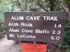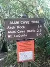 To Alum Cave Bluff: 2.3 miles one way, 1136 feet of elevation