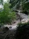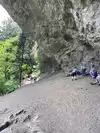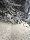 It is actually a very large outcropping of rock and not technically a cave but impressive nonetheless. We enjoyed the rest before starting a treacherous return down the mountain. Interestingly, it was not just the ice that was the issue but rather as temperature rose, the path became very muddy and more slippery. Going down on ice and mud made for slow progress plus the number of hikers coming up grew many times.