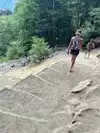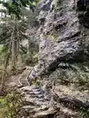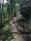 IMO best trail to get to the lodge. Not terribly strenuous. Trail levels out some after assents so one can have a breather. Some places trail is on bald spots use the hand holds.