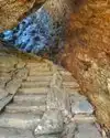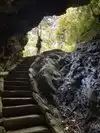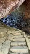 The hike to the cave was about 5 miles round trip, with most at a steady upward pace. There's several logs to cross streams, a staircase cut into & through a rock, and finally a huge stone overhang. Extremely scenic hike.