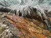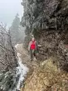 As we continued up, it started to get icy on the path. There were more rocks (actually more like slate) on the path covered with ice. This made the trek slower but passable. There was a section with really large ice cicles on the rocks on the side of the mountain making for another photo op.