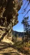 We did this hike to the top of Mount Leconte but I will review the portion to Alum Cave. The first half of the hike is fairly easy, nice views of the stream. Once you reach the rock arch (which is really cool) things get a bit more challenging but not too bad. The views as you get higher are amazing. You will see the eye of the needle about 3/4 of the way to the cave which is pretty cool as well. They are working on the trail so it is closed part of the week but the work they are doing is simply incredible. The cave(not really a cave but a large over hang) is really cool and a good place to have lunch or stay dry if you get caught in the rain like we did. You can continue up to Mount Leconte from here if you wish, although it's a tough hikes I be prepared if you plan to go all the way. You can also go up the trail to inspiration point from here. It's not too much further or too hard. I highly suggest it as the view is truly inspiring. Wear good shoes, brings snacks and water. No water or facilities at the cave.