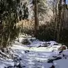 It starts off easy enough along the creek. As we made our along the path, it was more of a stroll than a hike for about 1/2 mile. It then started to get steeper and the snow started to appear. There were a number of small bridges that criss-crossed the creek. About a mile into the hike and as we approached another bridge, Arch Rock came into view. The stairs made of rock go through the arch.