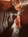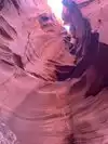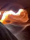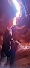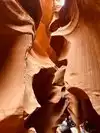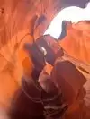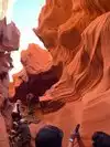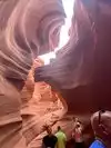 Beautiful experience entering this sandstone rock site along a tunnel carved by the waters as if it were painted by a great sculptor in Arizona. Great wonder of the nature of the orange-pink color you can admire the curious rocky shapes with the light penetrating from above creating beautiful shades, very good our local guide who plays a personal flute inside that gives more sense to our visit.