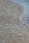 I assume it was high tide when I was visiting because there was a ledge of sand where the water came all the way up to the ledge, then there was about a two foot step up to sand that was not packed at all. The width of the sand where the water wasn't going was only 10 to 12 feet before you get to the dunes.