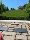 As we left the ceremony we walked down the hill to the road and turned left. Resting next to a curved arch of memorial benches we saw the headstone of Joe Louis, the former World Champion heavyweight boxer. Although he did not see active service he joined up to encourage his fellow countrymen to fight for freedom and democracy against tyranny. His fights against Max Schmeling were particularly memorable. After the war Schmeling became something of an Industrialist and a very wealthy businessman. Louis fell into debt and had to scrape a living. When Louis died, it was Schmeling who paid for the funeral as they had remained firm friends.
