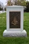 After that we walked through the small amphitheatre (memorial garden) and past the memorial to the unknowns from the Civil war. We then walked down the hill and turned right at the bottom as we headed back towards the larger amphitheatre and the tomb of the unknown warrior. On the way there we passed the memorial stone to the WW2 band leader, Glenn Miller. As we approached the amphitheatre we saw the memorial headstones on the right of those who perished trying to rescue hostages from Tehran on 1980 and the space shuttle disasters of the Challenger and Colombia where both crews were lost.