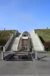 Artesa is one of the most beautiful and distinguished properties in Napa, sitting on and cut into a hill with sweeping views. The entire complex is covered with sod, and with the outdoor steps and fountains looks quite New Age.