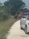 Four adults and we immediately came upon three ponies on the side of the road. I U-turned and stopped right beside them. Big mistake. A wildlife officer in a white SUV saw the whole thing and stopped in front of us, blue and red lights flashing. A really good guy, a true professional and he warned us of a $300.00 fine. We had not seen the "they bite, they kick and stay 40 feet away" sign(s). One of the ponies stuck his head through the passenger window and as we petted his nose, the wildlife officer responded. Two veterans in our group and we understand and obey rules and regulations. We simply missed the sign and we all appreciated the officer's response.