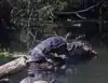 We walked up to the trail path and watched as the automated machine opened the gate to let more water through It's metal arm was just inches from the power line above it!