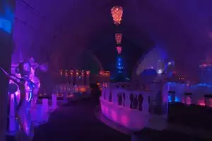 This place is a must see! The ice carvings are amazing -- jousting horses, bedrooms, etc. Don't miss out on the appletini in the carved ice glass.