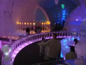 This small building has some incredible ice sculptures. Everything in there was very well done and I am not surprised to know they compete with them. However it is a very small space and the bar was not very impressive. They only serve one drink - apple martini. It tasted ok but the ice glasses, while they looked impressive, were almost impossible to drink from. If you are there, it is something to see but I would not go out of the way to see it.