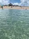 The beach is beautiful. Calm waters, Beautiful sand. The only drawback is the parking lot. It was crowded and not paved. It was very messy and I felt like I needed to wear rain boots to walk from my car to the beach.