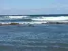 What a beautiful beach. Dark turquoise water, more gentle waves (swells) than some other beaches, and a terrific flock of pelicans diving over and over to catch fish. People swam here and dmall ones played in the surf. A few folks were scuba diving for what looked like shellfish. Beach itself is a bit of a slope which we like- made for comfortable napping. Bathrooms amd decent parking. We will definitely go again!