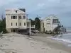 Unfortunately, this beach area has been hit hard repeatedly over the last several years and has still not recovered. The pavilion is now closed and sand has been piled at the former parking lot and in front of the pavilion. Strangely, there's still a lifeguard stand there.