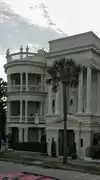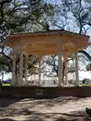 The Battery is a landmark defensive seawall and promenade in Charleston, South Carolina. Named for a Civil War coastal defense artillery battery at the site, it stretches along the lower shores of the Charleston peninsula, bordered by the Ashley and Cooper Rivers, which meet here to form Charleston Harbor. The large gazebo in the middle of the park is a popular gathering place for locals and tourists. The park and its surrounding gardens, huge trees, grassy areas and walkway along the waterfront offer a romantic backdrop for couples and a pristine place for picnicking, playing ball and just plain relaxing. Fort Sumter is visible from the Cooper River side. Also the World War II aircraft carrier USS Yorktown at Patriots Point, Castle Pinckney, Fort Moultrie and Sullivan's Island. The Battery also is famous for its stately, mostly antebellum mansions, including the Louis DeSaussure House, Roper House, William Ravenel House, Edmondston-Alston House, Charles Drayton House, George Chisolm House, Villa Margherita, William Washington House, Colonel John A.S. Ashe House, James Spear House and the Colonel John Ashe House. In the period of the American Revolution and War of 1812, Fort Broughton and Fort Wilkins occupied White or Oyster Point at the tip of the peninsula, so named because of the piles of bleached oyster shells on the point. During the Civil War, the park was occupied by Confederate artillery, some of which shelled Union forces in Fort Sumter in 1861, triggering the Civil War.