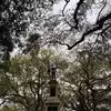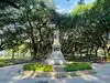 You can walk in between large Spanish moss trees while stopping to see the historical monuments and statues