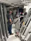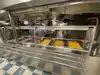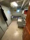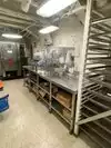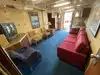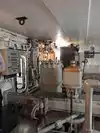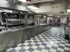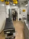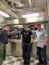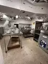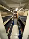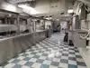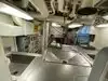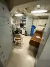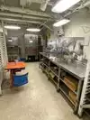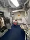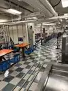 The team had triple bunk beds, locker walls, a shower and toilet area and two huge kitchens in several rooms. During the main meal period (which was only one hour long), up to 2,600 sailors were fed here. There was only a sparsely furnished lounge with tables for four that could accommodate perhaps 150 people.