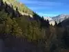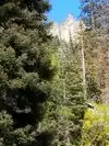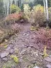 A very rocky, rutted path/road fairly steep in some places and, thankfully, mostly in shade in the afternoon. Some nice views down the valley, but not very scenic. However, October is not the best time; the water was just barely falling and not very picturesque. I was disappointed after putting forth so much effort. I'm pretty sure the water flow would be amazing in spring time.
