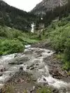 This was an OK hike. We are not hikers. Lots of people along the road that takes you up to the falls. Not much of a fall, but nice enough. Beautiful mountains surround you. Trail is rocky and wide.