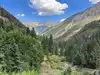 Bear Creek Falls trail starts on the south side of Telluride and climbs up into a side canyon on its way to the falls. While the trail is moderately steep, it is not so steep as to require switchbacks and is wide enough to walk abreast, pass people. You can still see where an avalanche took out a large area of trees several years ago, enjoy the sounds of nature and the stream while you take a leisurely hike.