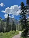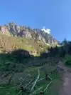 We enjoyed our afternoon hike up to the Falls. Easy, wide road most of the way. Very popular hike. The avalanche field from the spring is amazing...the slide took out hundreds of trees uphill!