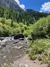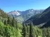 Manageable hike a few yards from the northern border of town. About a 2 and 1/2 mile steady climb of moderate severity along a broad dirt path littered with rocks. Destination is the Bear Creek Falls which arise majestically from a plateau near the peak. Surrounding mountain peaks and grassy meadows are breathtaking. Early morning appears to be the best time. Path gets a little crowded nearing lunchtime.