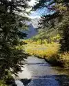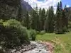 At the first viewing point for the falls, two trails branch off - the larger one continues ahead to the main viewing point, the second much smaller path heads up and to the side. Take the path less travelled, and walk for an extra 30-60 minutes to the Bear Creek stream and valley to find yourself in the most spectacular scenery you can imagine - brilliant green valley, crystal clear running water, and wildflowers galore.