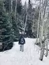 We hiked to the frozen falls along a mostly frozen trail. Didn't get incredibly close as there were holes in the ice along the creek. Several folks ahead of us connected to the trail that leads up to Mtn Village and the pass. Would love to add on if more time. Nice views up and down this trail.