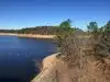 Close together campsites, most with no view in deep dark wooded cover. Curvy winding roads in campgrounds for camper trailers are very tight; road bed built up with likely-hood of tire drop off and trees right up against road edges that you have to drive through by the skin of your teeth. Lots of people in an overused area. Trails, lake, campground, roads are full of people. Not the place for solitude. Lake is pretty to look at but, seems like a long distance to drive from campground to get a view. Lake water looks clear until you wade out an stir up the red siltly bottom. Lots of restaurants and shopping nearby if you need something else to do.