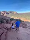 My kids (ages 11 and 8) hiked with me up most of this during sunset. We nearly missed the place to start heading up as the signage does not say "Bell Rock" and it appears there are multiple ways up and down this trail. My daughter said, "God is speaking!" as the sun hit the red canyon and I could understand why when I stopped to look. It's breathtaking. There's a bit of scrambling over rocks but it's not bad. I recommend it for sure. Bring lots of water, a hat, and hand sanitizer for when you need someone to take a pic of your group!
