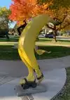 With a little extra time while staying in Greeley, we decided to venture over to nearby Loveland and take in two different recommended sculpture gardens there. The Benson Park Sculpture Garden is an outdoor display of over 170 pieces. There are sculptures spread throughout the ten-acre park with easily accessible paved paths to walk on that allow you to get up close to most statues. The sculptures are on two sides of a busy main road (29th Street). Use caution when crossing from one side to the other. The sculptures range from highly realistic traditional bronze statues to more abstract sculptures to whimsical pieces like the banana on roller skates (On a Roll by Jack Hill). The park is usually open. There is free off-street parking (can be limited when the park is very busy) or nearby parking on the streets. It is a pet friendly park. It is a great place for an outdoor stroll as you take in the exhibit. There is no fee to enter the sculpture garden. The park has water features and provides many photo opportunities.