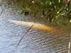 Alligators sunning/swimming, gar fish, great blue heron, snowy egret, palm warbler, double-crested cormorants in the trees. Very peaceful.