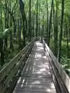 We stopped there by chance and when noticed a wooden trail going into forest decided to follow it. We were surrounded by beautiful tall cypresses and other plants and trees. The trail ended by a natural pond with jumping fish, an alligator and a gorgeous white egret hunting for food. It was peaceful and pleasant to spend some time there just observing nature at its normal activities, fresh and undisturbed.