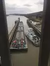 Walking, running and cycling all possible across this bridge. It provides great perspective of the river and its surroundings. It was great to see a set of barges go through th lock.