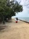 Lovely location, peaceful beautiful, there are no umbrellas or towels, its protected beading beach for turtles.Avoid weekend, don't miss the fishing terraces on the other side of the park,they are not on the beach, they are directly over water even if you don't fish you will love them.