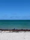 We had high expectations and chose this to be the only beach we go to during our stay in Miami. It's far from the image we had of a Miami beach (golden sandy wide endless beaches... this really isn't one). We chose this after reading good reviews (including it rated as "one of the US top 10 beaches") - we've seen a good deal of beaches, mostly outside the US, and this definitely wasn't at our top 10 list.... It's a white-sand beach, not to wide sand strip before the greenery starts. IT's pretty nice and picturesque, lots of dead sea-weed on the beach, pricey chairs and shades (I think they were 10$ a piece of 20$ for a chair-shade combo). We were there early October, the water was cold, powerful currents so you can't really swim, it was windy so staying on the beach wasn't that nice, the sea-weed and type of sand made it difficult for my kids to play in the sand (e.g. build castles etc.). We also had a picnic in one of th epicnic areas, which was nice till the raccoons got there and really didn't let us eat. And to top that, there were mosquitoes in abundance at the picnic area.