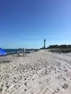 Was a really nice beach away from the madness. The lighthouse in the background makes for a scenic day. The water was super calm and my 3 yr old nephew loved splashing in the water. Two chairs and an umbrella were only $25 for the day, a steal compared to Miami Beach. We had a great day on this scenic and family friendly beach. We saw iguana and a manatee! Water and beach was super clean and clear.