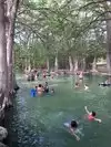 Great time swimming at Blue Hole! Our party ranged in ages from preschoolers to teens to adults- everyone had a fun time at the Blue Hole! The water was beautiful, though cold, and shaded by a cypress tree canopy. There was a shallow area where little ones could stand. Deeper sections to float in tubes or do the rope swings. Park reservation max did not make it feel too crowded- families stayed in their own groups. Recommend for a picturesque Blanco River swimming spot!