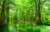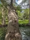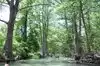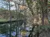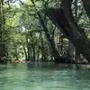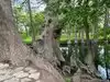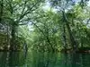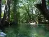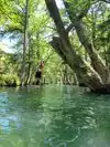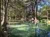 A landscape that captivates with its beautiful cypress trees whose roots are hidden under the crystal-clear water of the space delimited for swimming, floating, or jumping from a rope.