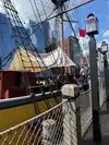 Huzzah! Our guides were very fun and upbeat. Great tour of the ship and a history lesson with videos and portraits that come to life regarding the tea party and revolution. Very cool seeing one of the original boxes from the event as well. Highlight of course was throwing the tea overboard. No taxation without representation!