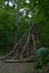 We then continued our hike, now using our trekking poles along the white marked trail until we reached the markers for the red trail which branched to the left. We followed it to where it intersected the yellow marked trail and turned left onto the yellow marked trail which returns you to Route 9D about 400 yards north of where we started our hike. The last 1/4 mile of the white marked trail, the red marked trail and yellow marked trail are just normal hiking trails. The red marked trail is somewhat steep in places and it is a little harder to find its trail markers. The yellow marked trail is wide and easy to hike. The main problem we had coming down was the dead leaves which coated the ground and were often slippery underfoot; having the trekking poles made it so much easier to maintain balance.