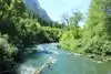 You walk along the river, under a canopy of huge trees that were just beginning to change colors mid September. Bring a picnic, there are several picnic tables near the first parking area, situated near the river under big shade trees.