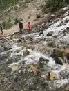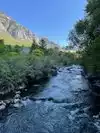 Its a short easy walk on a paved walkway to the falls. We saw young kids putting their feet and playing in the cold mountain water. There are two parking areas. If you pass the first parking area, you can get to the falls by crossing a bridge a short distance from the 2nd parking lot. The first parking lot is the best to park if you enjoy an easy walk to the falls.