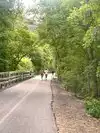 I drove to get to the trail, and I'm glad I did. It isn't closed despite what the sign says. When I saw the sign that said the trail was closed, I decided to walk down by the picnic area, which brought me right back to the trail. I was passed by at least 60 joggers and many people on bikes. The highway is so loud that it drowned out the sound of the running water, but it was still a really nice walk. They are still working on a bridge but it's full of people enjoying the trail.