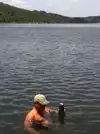 We did not go IN the water, simply enjoyed the view. The view from the dam area is wonderful. Maybe next time we'll charter a boat and get closer to the water.