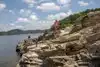 Unlike Texas lakes, this one is clear. Lots of people fishing and in canoes. Very peaceful and the stone shores are beautiful